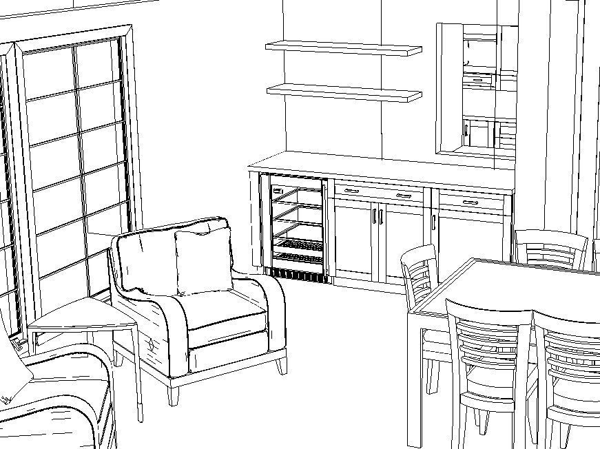 We can work up floor plans, elevations, and 3D perspective files that are to-scale. These help identify things like fitment of cabinetry or workflow, and spacing needs for furniture, throwing parties, or just family life. Hand these off off to your contractor, builder, or architect, or use them as a guide in your DIY.